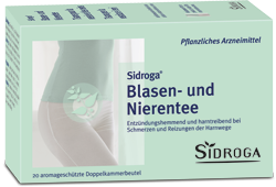 Sidroga Blase- und Nierentee: Traditionelles pflanzliches Arzneimittel zur Durchspülung der Harnwege als unterstützende Behandlung bei leichten Beschwerden des Harntraktes. Die Anwendung dieses traditionellen pflanzlichen Arzneimittels im genannten Anwendungsgebiet beruht ausschließlich auf langjähriger Verwendung.